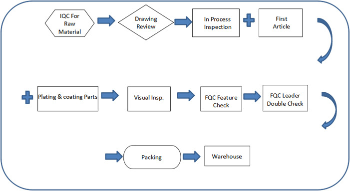 Our QE team is responsible for the promotion of company-wide quality activities, training each department to understand customers' specifications, and guiding each department to improve quality.